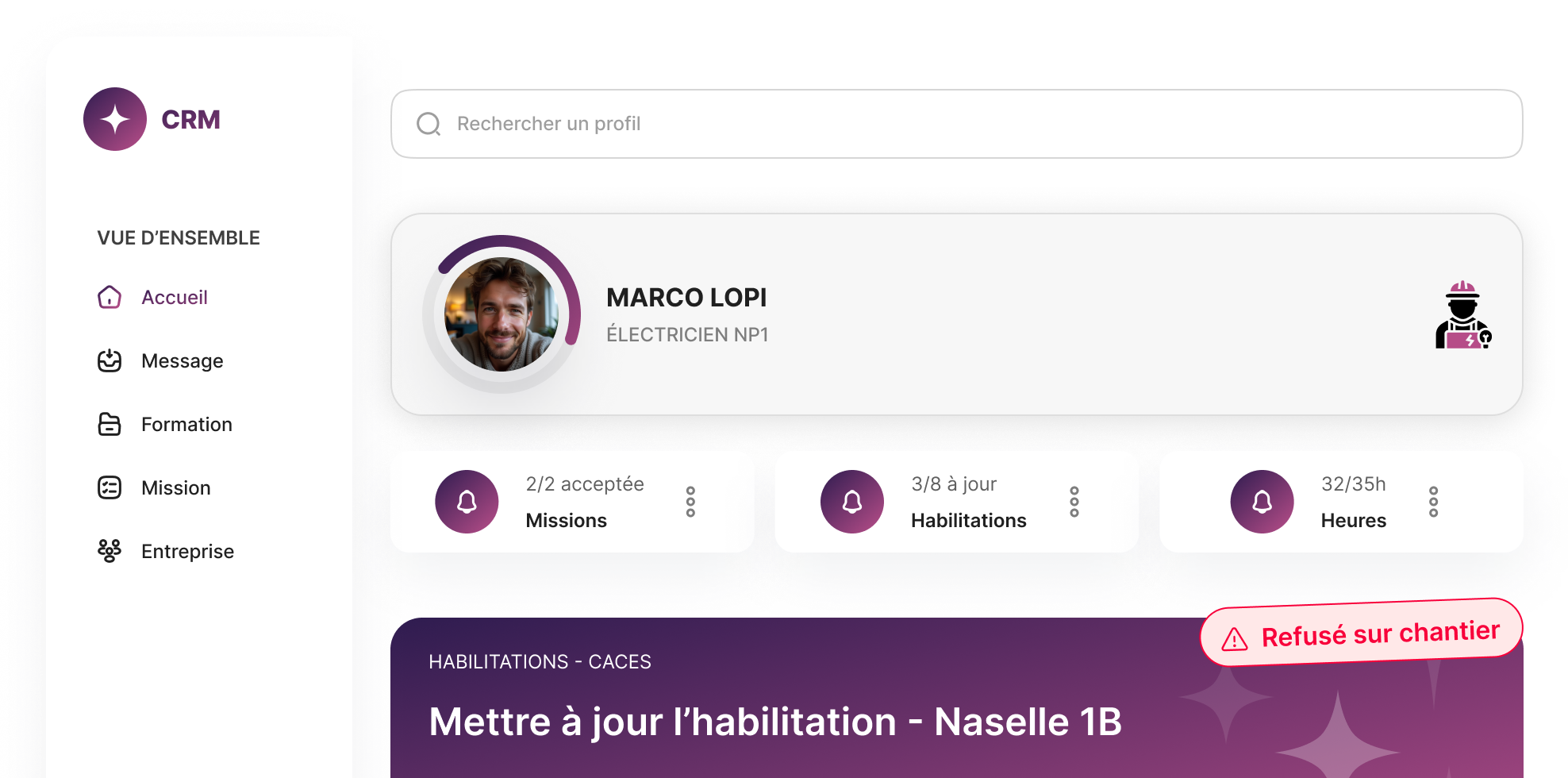 Assurez la conformité stricte des habilitations et des temps de travail.